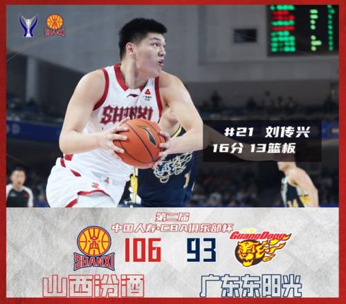 CBA俱乐部杯两连胜!山西汾酒10693力克广东东阳光