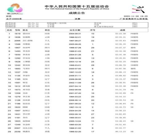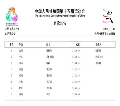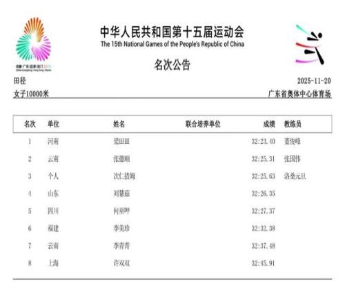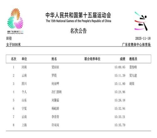除了短跑赛场的耀眼,中长跑和马拉松项目同样精彩纷呈。11月15日,作为本届赛事首个全运会跨境项目,女子马拉松率先上演激烈角逐。云南名将张德顺展现出强大的统治力,以2小时30分20秒的成绩成功卫冕,成为全运会马拉松女子第一人。而在11月18日的女子5000米决赛中,河南队的梁田田以15分09秒85的个人最好成绩在雨中强势摘金,20日晚又在10000米决赛中以32分23秒40再次夺冠。