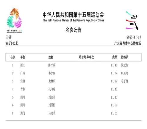 本届全运会赛场最大的亮点,莫过于浙江队16岁小将陈妤颉的横空出世。11月17日,她在女子100米决赛中以11秒10的惊人成绩一举夺金,并刷新了该项目的亚洲青年记录。仅仅两天后的19日,陈妤颉在女子200米决赛中再度展现绝对实力,以23秒02的成绩夺冠,创造了该项目近六届全运会最快夺冠成绩,加冕为本届全运会的“双冠王”。